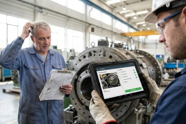 Todo mundo fala de fábricas futuristas e robôs inteligentes. Mas a realidade da indústria brasileira ainda é outra. A maioria das fábricas luta contra um inimigo velho e silencioso: o papel. Em 2026, máquinas que custam milhões ainda dependem de anotações em pranchetas sujas de óleo para serem monitoradas. O problema disso não é falta de modernidade. É prejuízo financeiro. A informação de um vazamento ou de um barulho estranho leva dias para sair da mão do operador e chegar na mesa do diretor. O resultado é a máquina parada de surpresa. A solução da Syngoo não é mágica. É transformar o papel em dado digital no celular do operador.