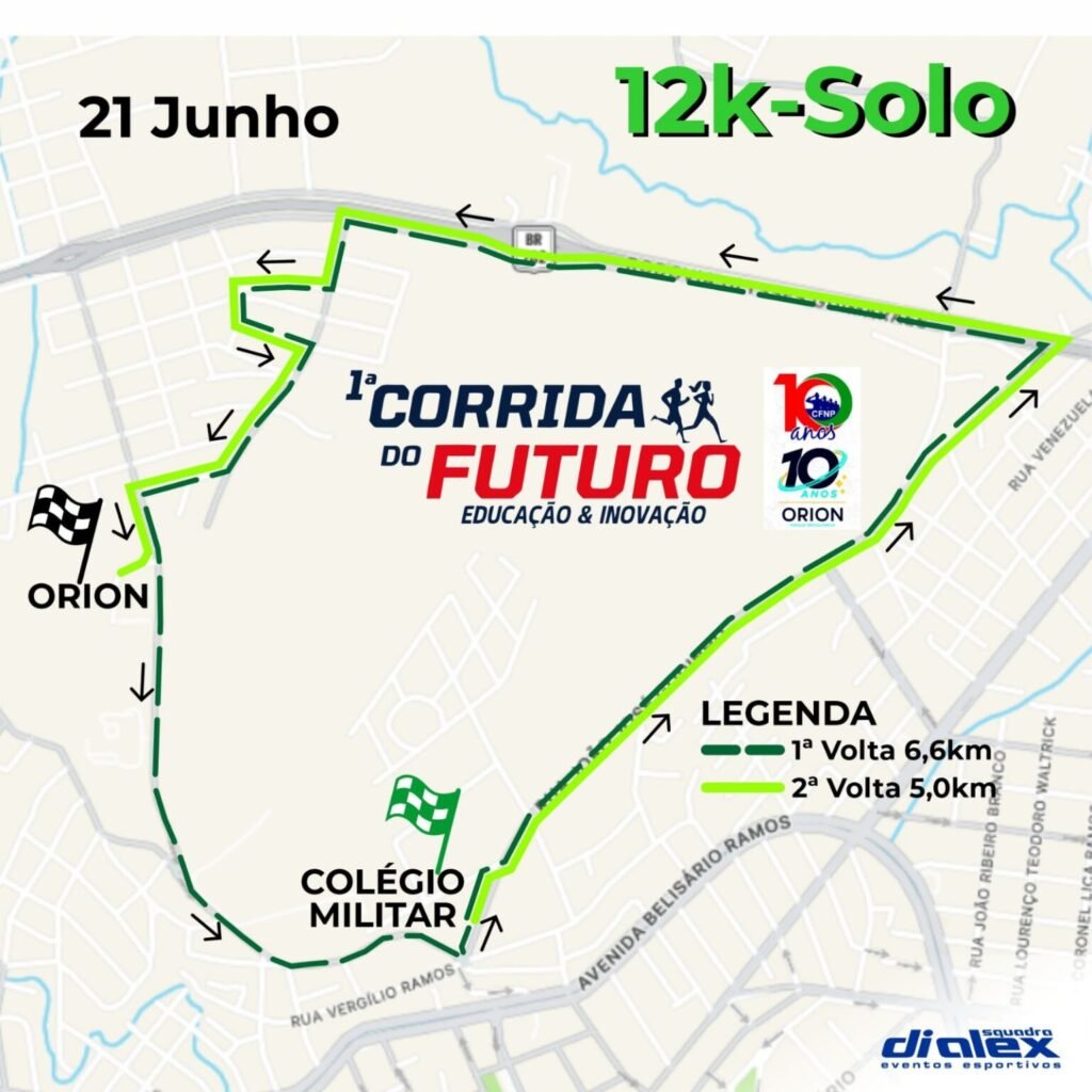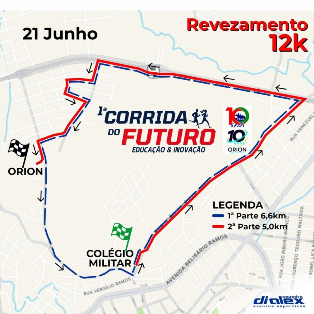 Estão abertas a partir das 18h desta quarta-feira, dia 1º de abril, as inscrições para a 1ª Corrida do Futuro, um grande evento que ocorrerá em 21 de junho, um domingo, primeiro dia do inverno, a partir das 8h10min, para comemorar os dez anos do Orion Parque Tecnológico e do Colégio Policial Militar Feliciano Nunes Pires (CFNP), unidade Lages.