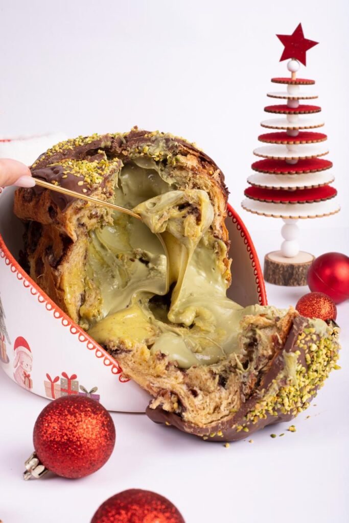 A grande novidade deste ano é a versão repaginada do chocotone de Pistache. O sabor, que já era um dos favoritos do público, ganhou um recheio mais intenso ao unir o brigadeiro de pistache à uma pasta concentrada artesanal da própria confeitaria. A combinação também chega ao portfólio no formato mini, ampliando as opções para presentes e lembranças natalinas.