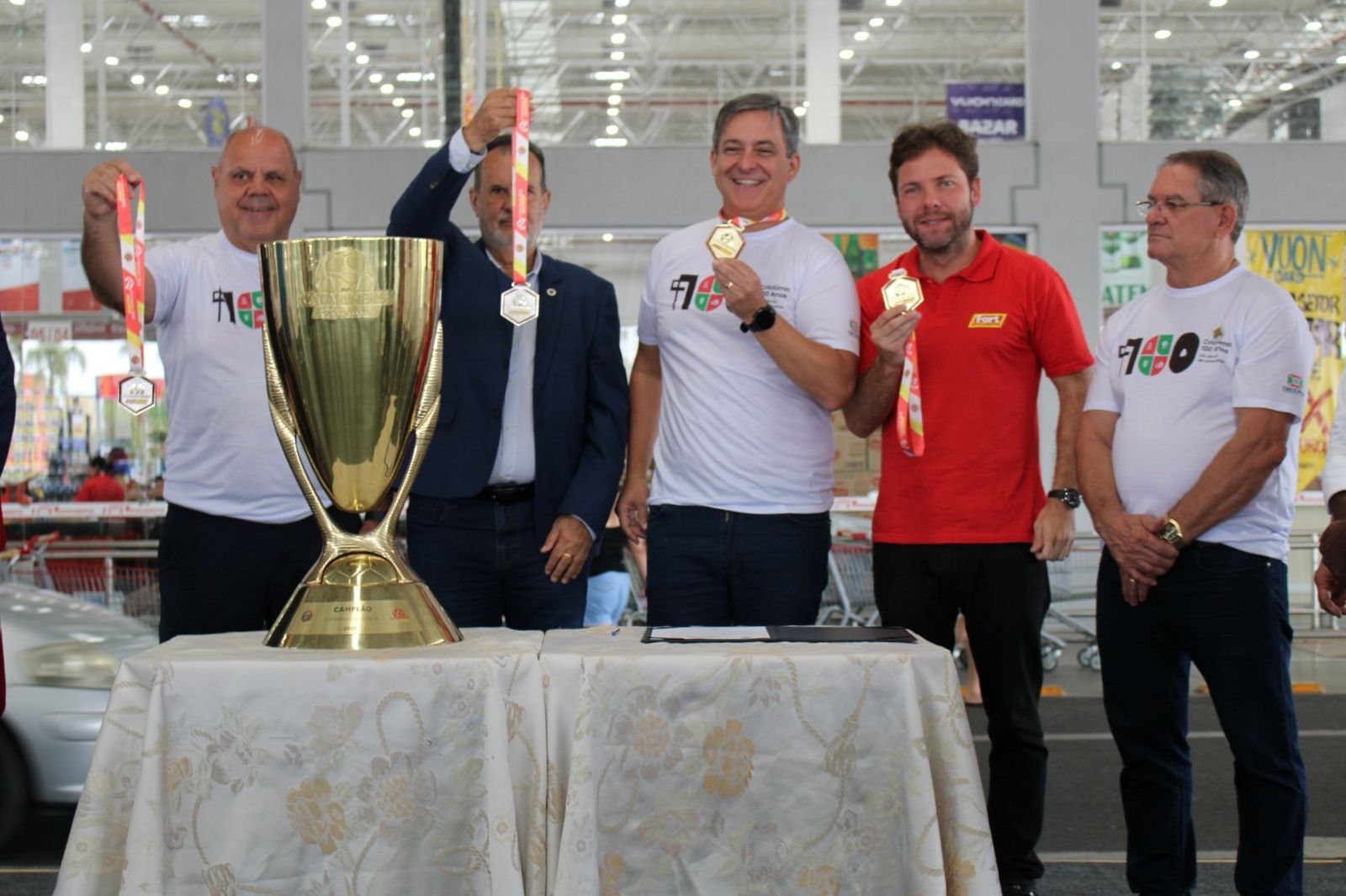 Ato oficializou a nomeação da “Taça Criciúma – 100 anos de emancipação”, da série A do Campeonato Catarinense Fort Atacadista 2025; cerimônia foi realizada neste sábado (15)